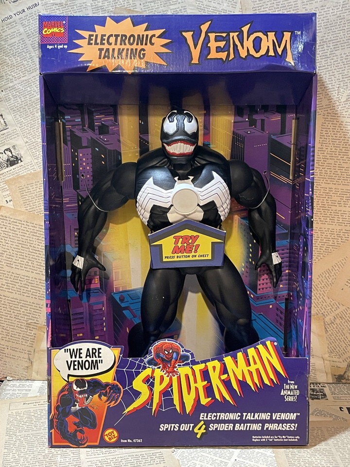 90年代にTOYBIZが発売したVENOMのトーキングフィギュアです。こちらは1994年に発売されたファーストタイプ。いわゆる初版です。中身は一緒なんですけど箱のデザインが結構違います(どちらもWEB出てるので比べてみて下さい)
