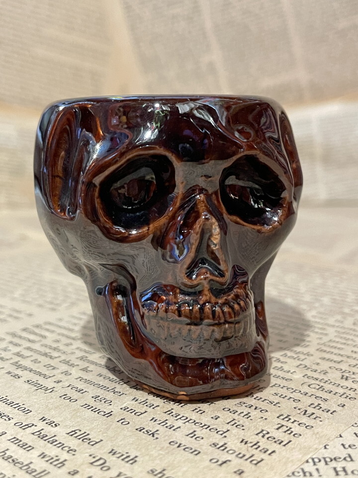 素晴らしい表情のスカルに雰囲気ある色味。たっぷりと釉薬をかけてあるので光沢や立体感が増してます。