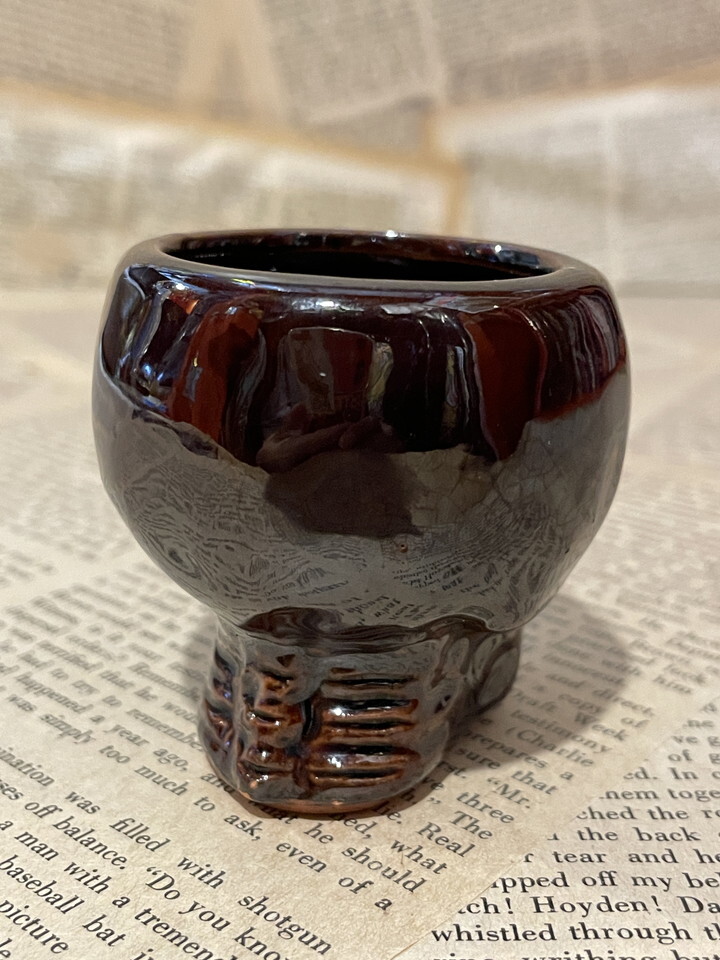 たまには渋めな物も。こちら50年代頃でしょうか、スカルの陶器製ショットグラスです。デキャンタと共に作られていたシリーズの1つです。Made in Japan。