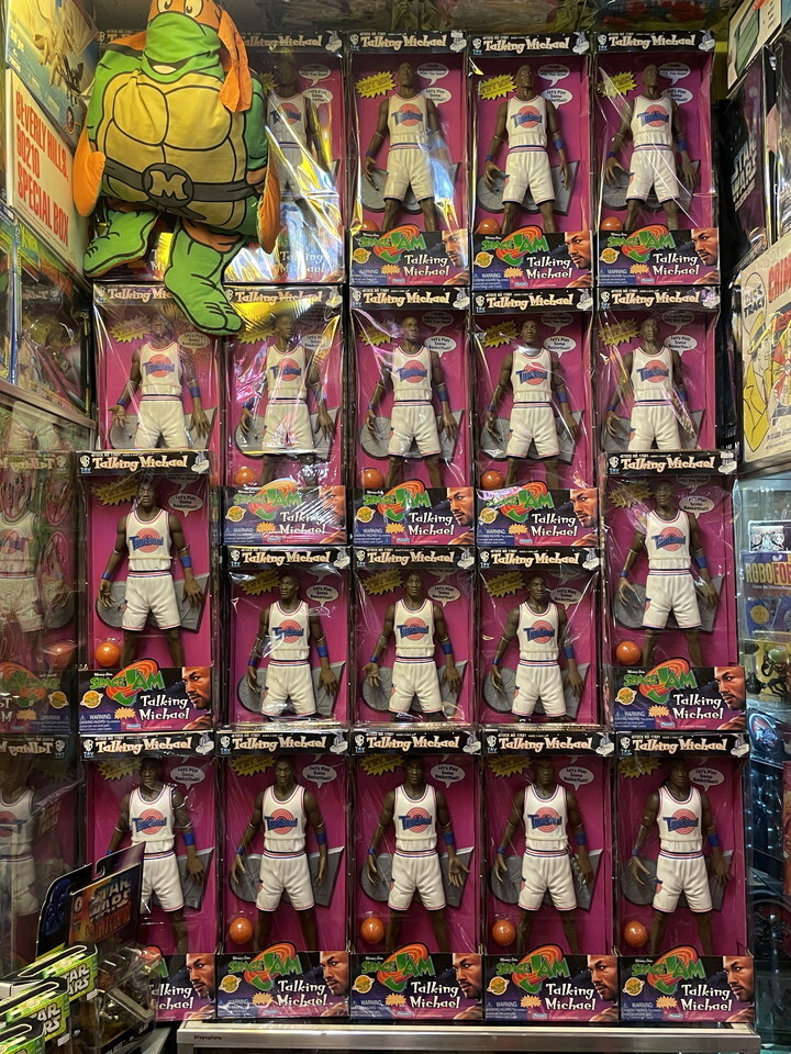 90年代に公開した初代スペースジャムの主役、マイケルジョーダンのトーキングフィギュアです。あのユニフォーム姿も貴重ですし15インチ程のビッグサイズですし、ファンなら必ず持っておきたい1体ですね。喋るし。