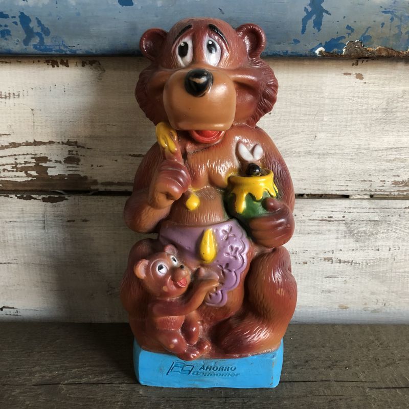 70年代に作られた可愛いクマの親子のコインバンクです。Play PalとかNew York Vinylとかあの辺と同じ厚くて頑丈なプラスチック製の大きな立体です。