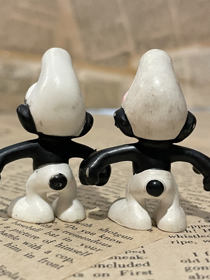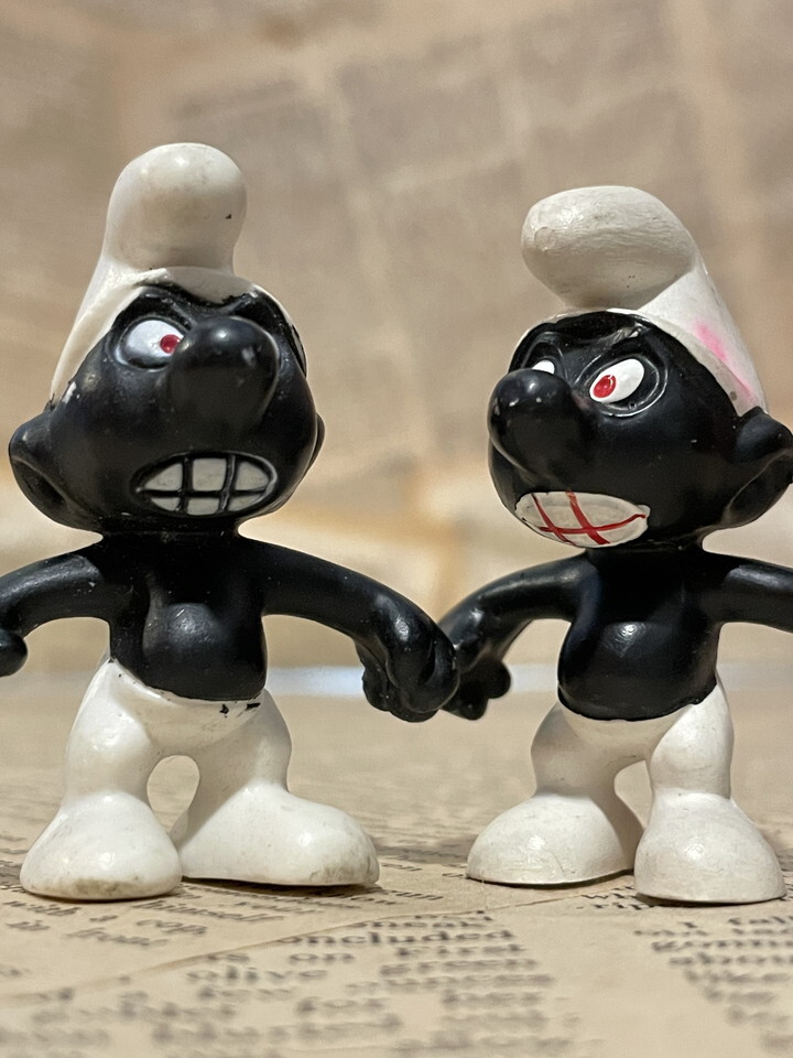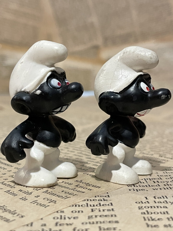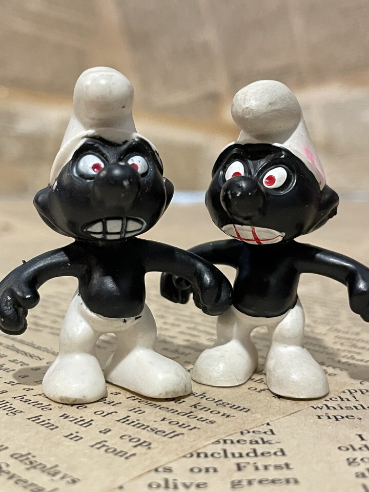 スマーフ少し増えてましたのでWEBにもアップしてます。こちらはブラックスマーフ。感染して凶暴なゾンビみたいになっちゃったバージョンです。80年代の物なんですけどよく見ると口の塗装が違うバリエーションです。