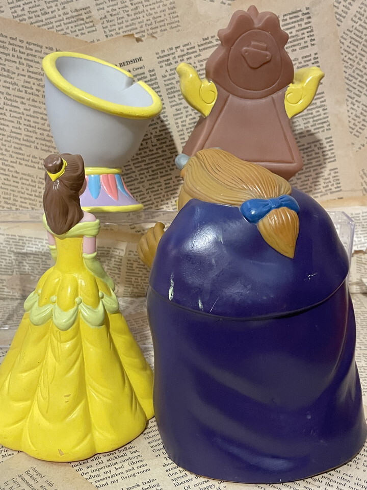 美女と野獣90年代のハンドパペットシリーズセットです。ちょっと肉厚な軟質ラバー製で底面が開いている仕様。個人的にこのタイプ好きです。ほど良くオモチャっぽく仕上げられてて可愛いんですよね。