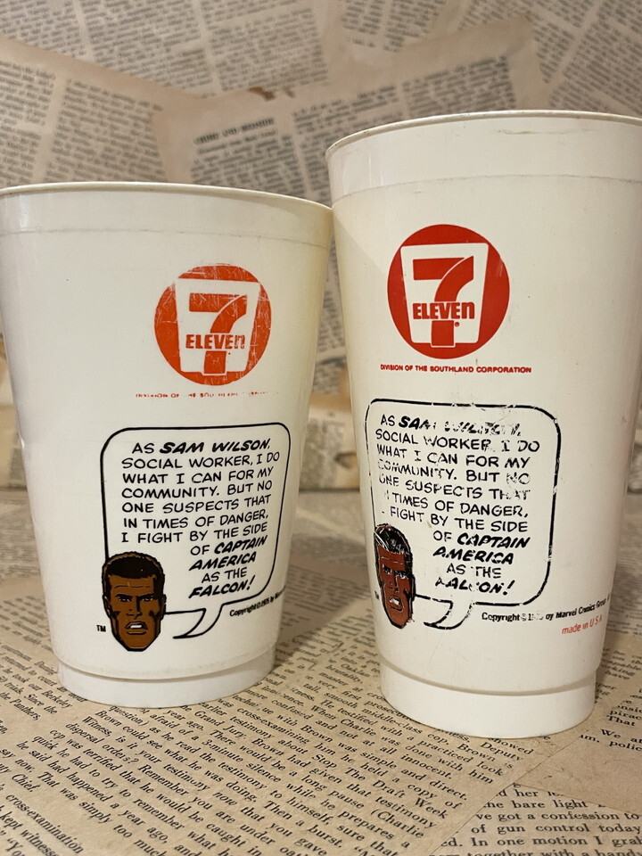 1975年にアメリカのセブンイレブンで『スラーピー』って飲み物を買うと手に入れる事が出来たプラスチックカップです。DCとかモンスターとか色々なシリーズが展開されたんですけど今回はマーベルヒーローのシリーズ入荷です。