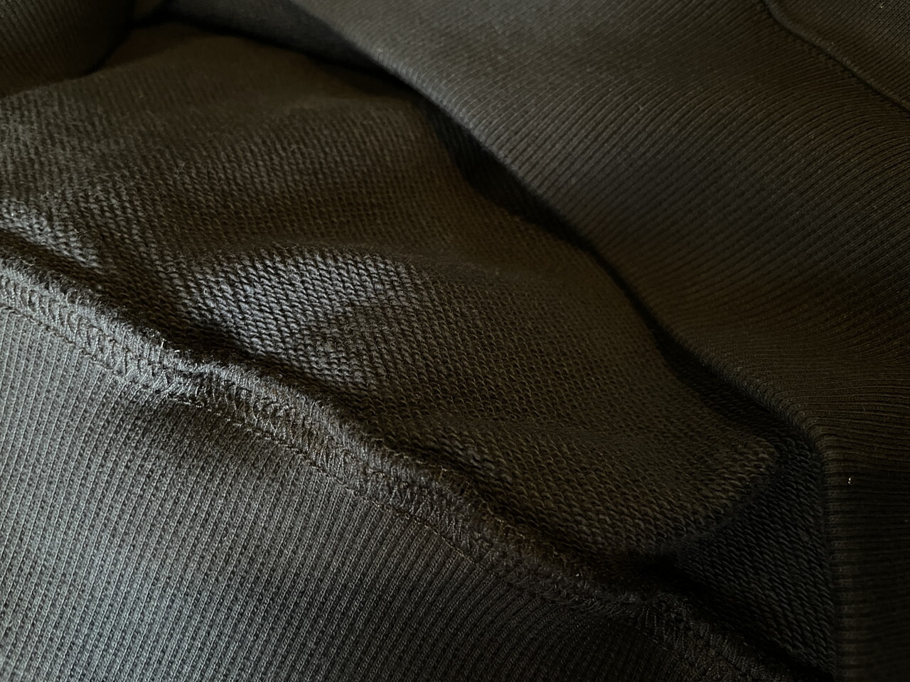 ボディには14ozヘビーウェイトの綿100%裏毛素材を使った