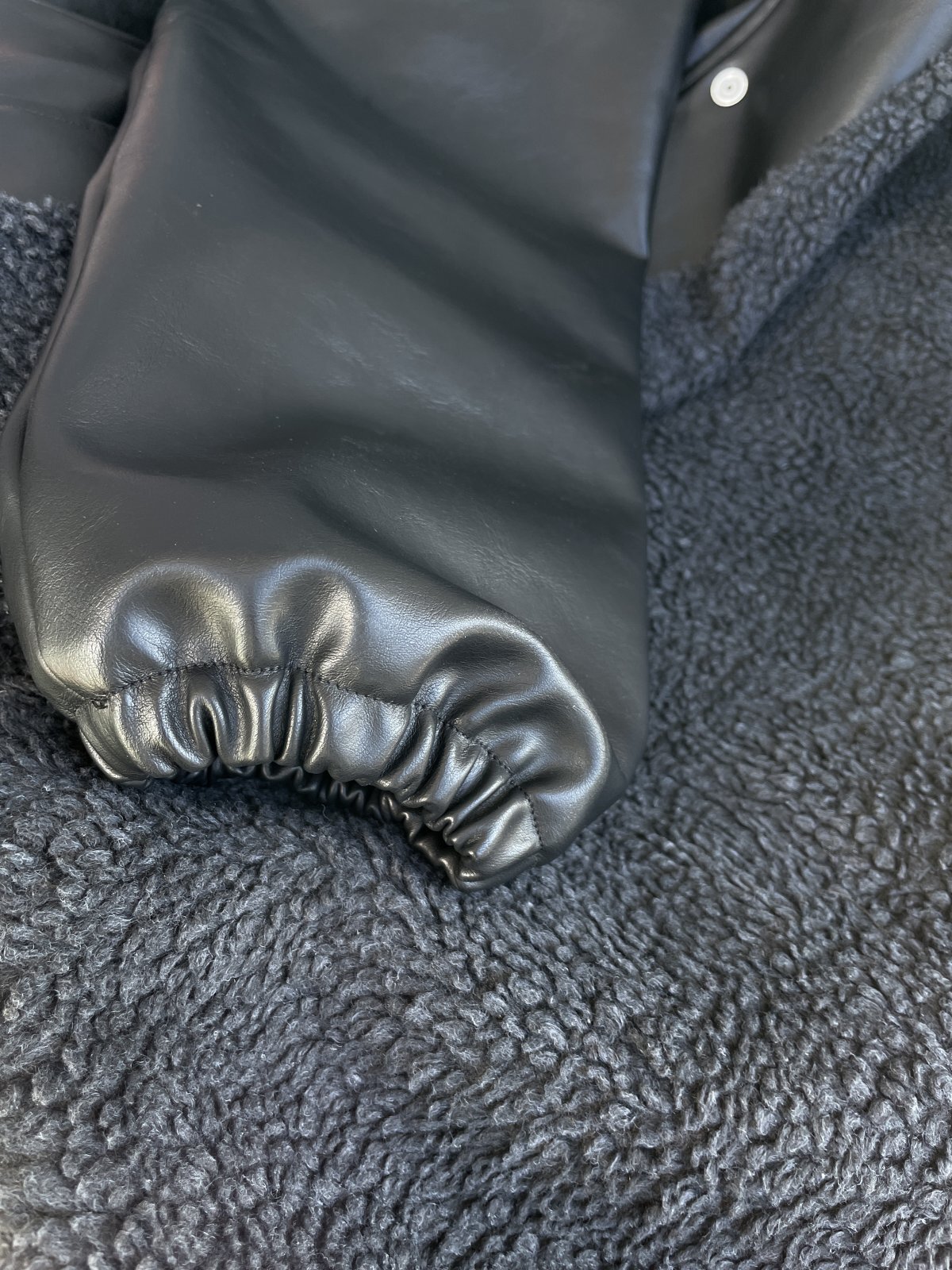 アンダーグラウンドな雰囲気漂うエコレザーを使用したコーチジャケット。